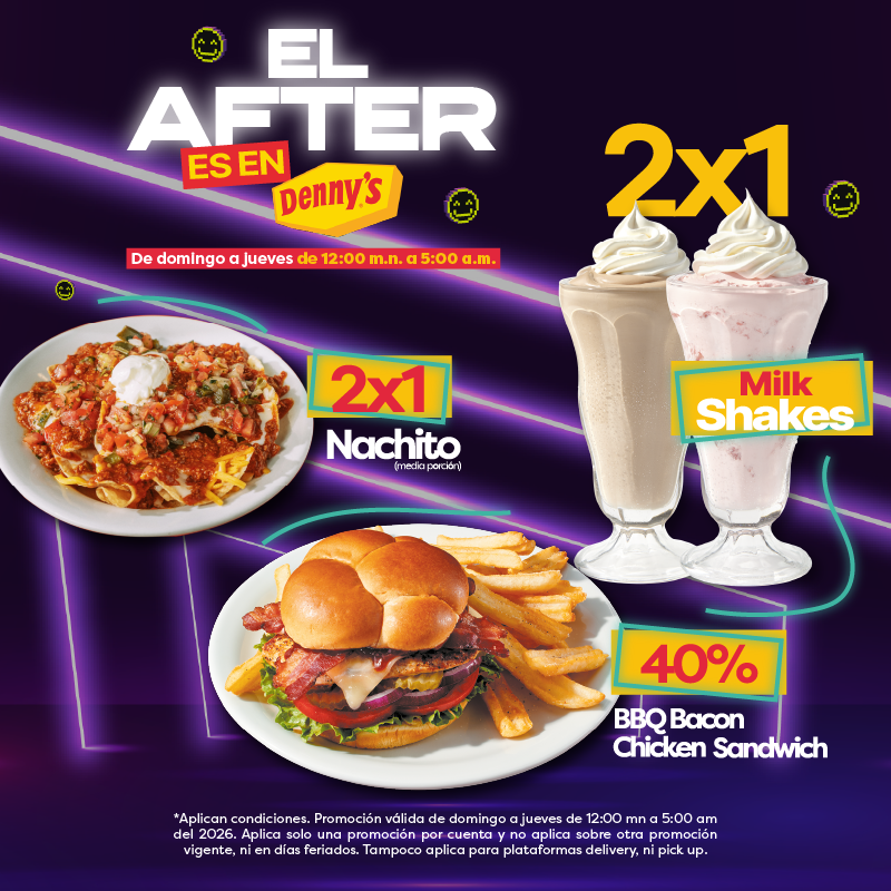 Promoción válida de domingo a jueves de 12:00 mn a 5:00 am del 2026. Aplica solo una promoción por cuenta y no aplica sobre otra promoción vigente, ni en días feriados. Tampoco aplica para plataformas delivery, ni pick up.